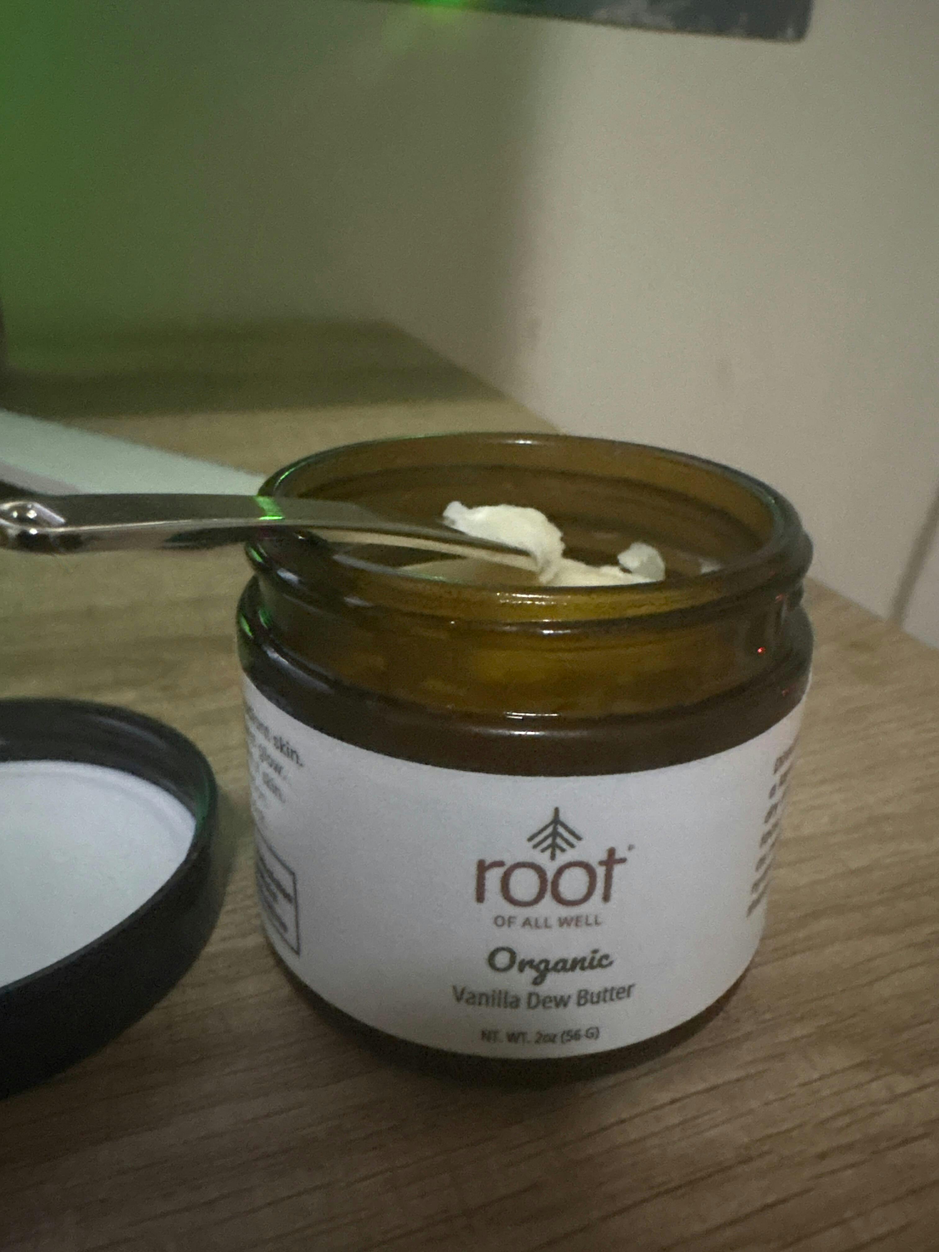 Upon first opening the Vanilla Dew Butter topical cream, I noticed how easy it was to open. The fragrance of vanilla, honey, and naturally mixed compounds had a smell that brought me back to my childhood days. The texture was not watery, not hard to apply, and it carries an everlasting smell. Recommended for gifts, self use! Thanks Root Of All Well!